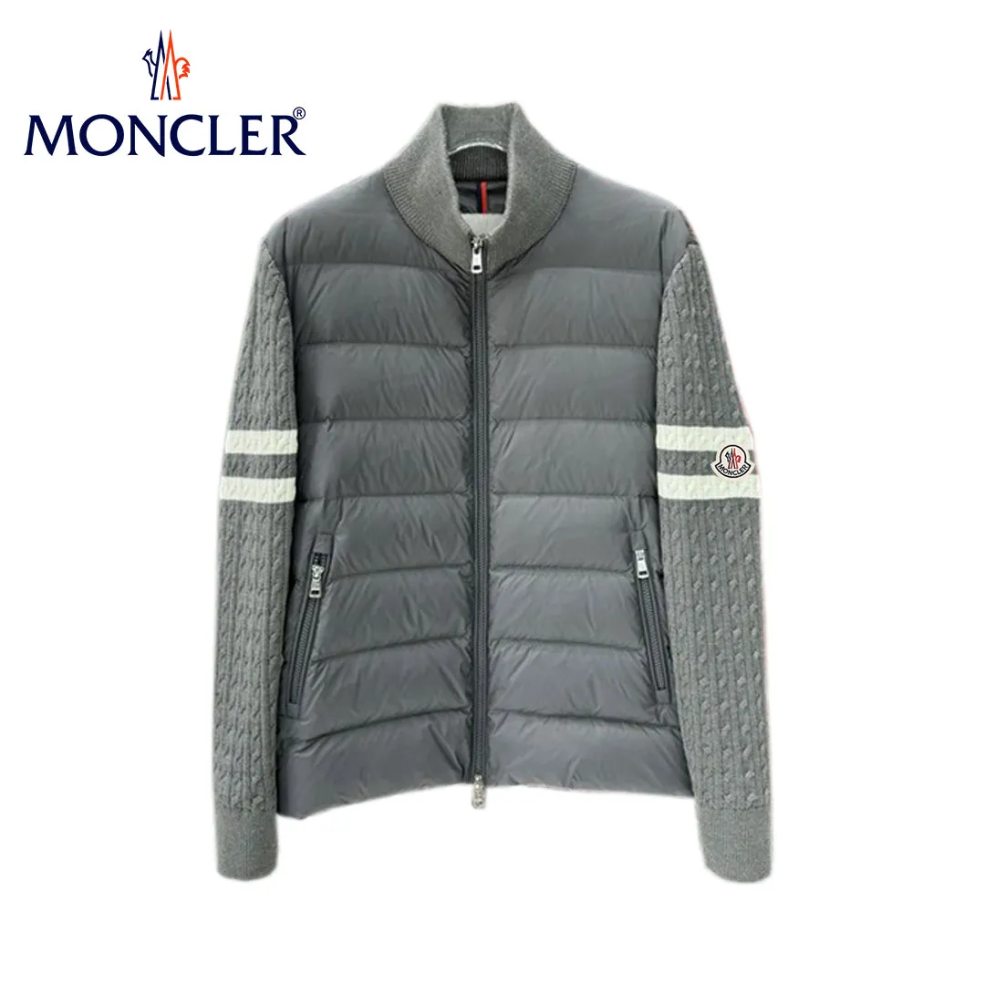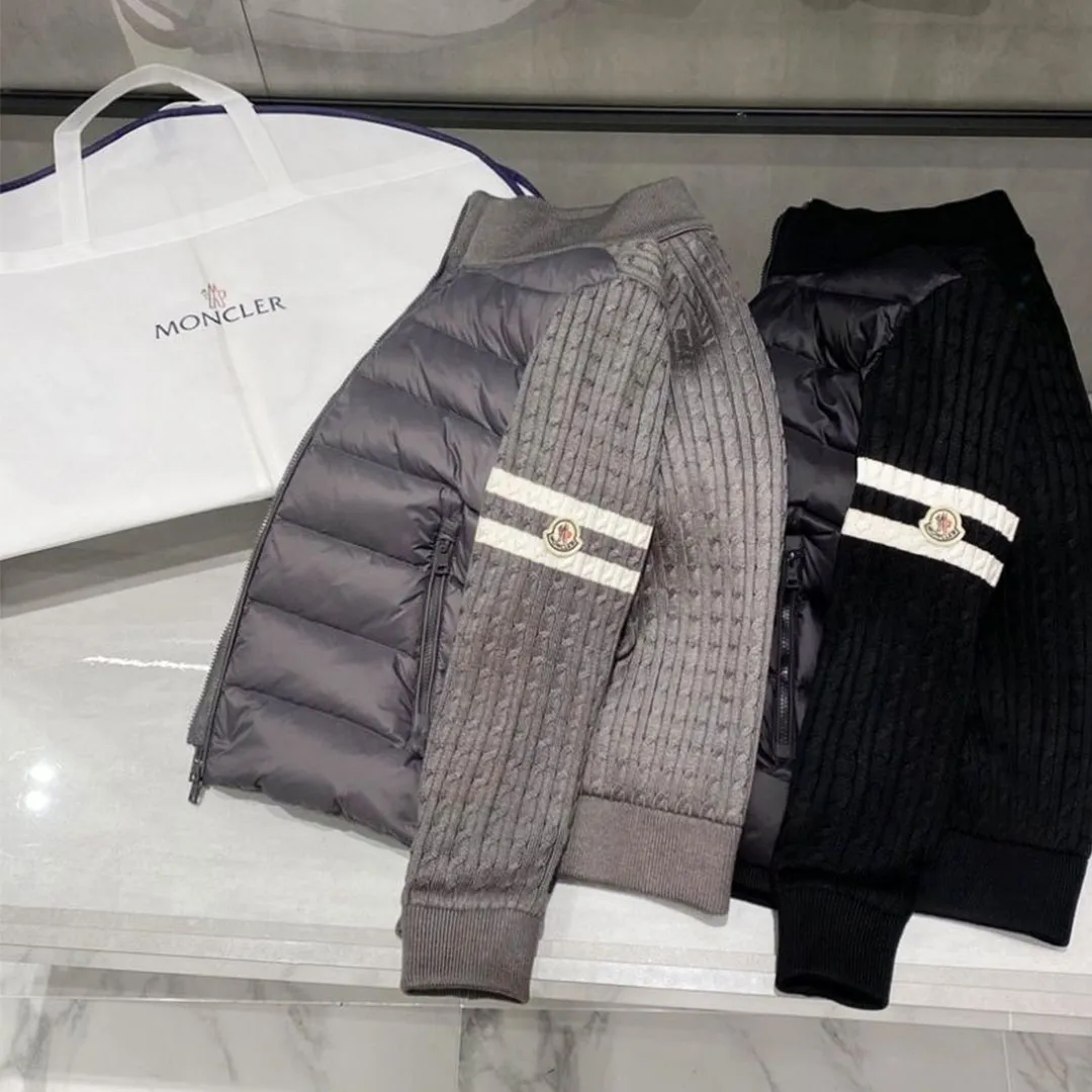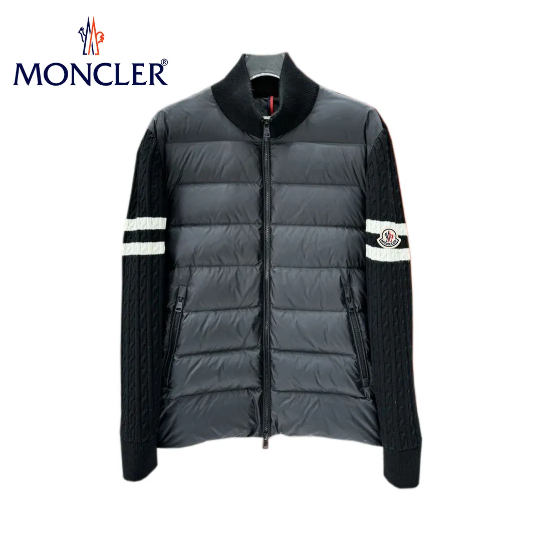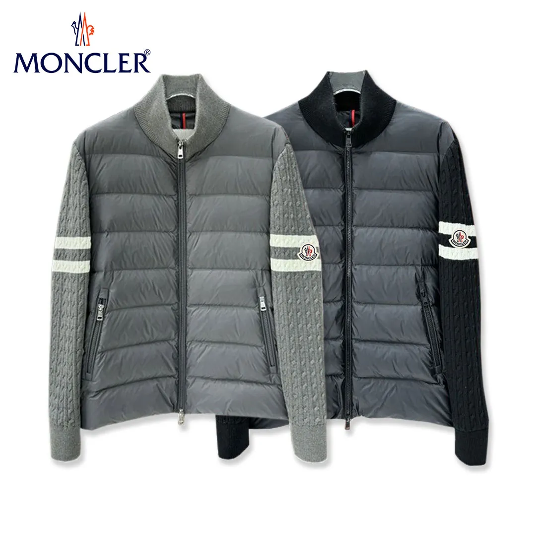 【Moncler】モンクレール 2025 スタンドカラーニットウールパッチワークダウンジャケット
