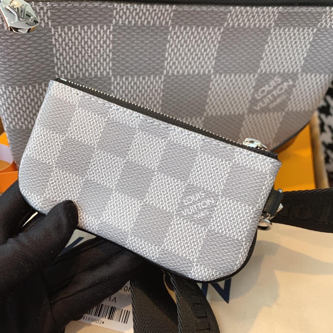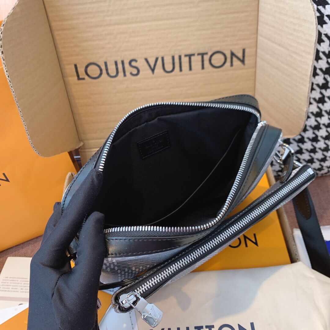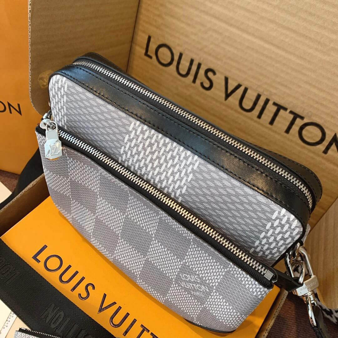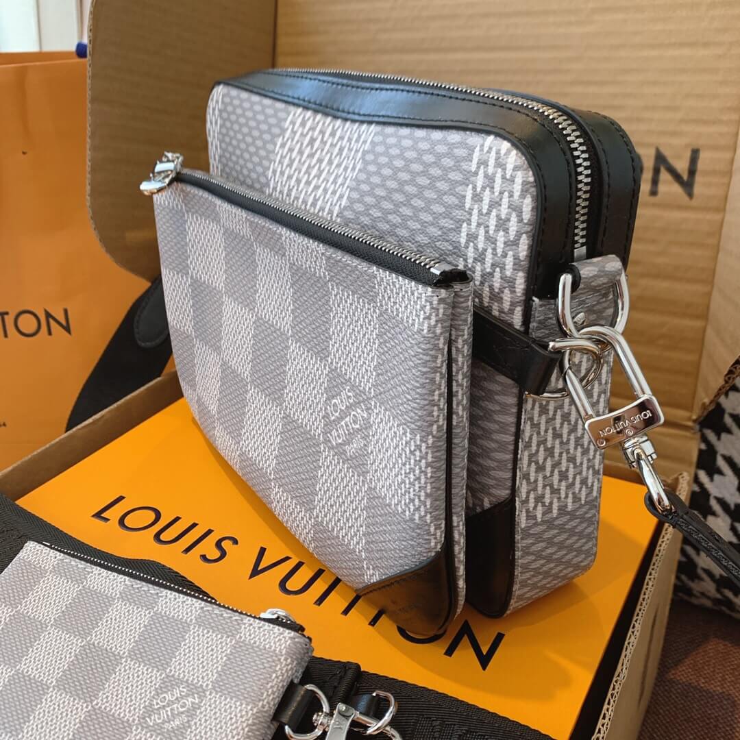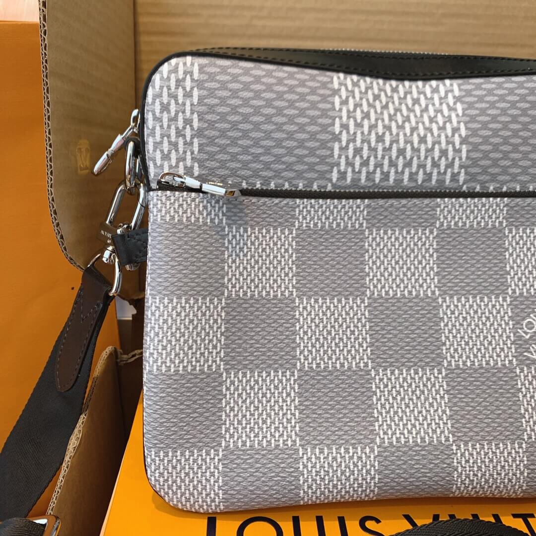 このトリオメッセンジャーバッグは ダミエグラファイト3Dキャンバスの目を引くテクスチャーで機能的なデザインを作成するように設計されています。取り外し可能なジッパーフロントポケットとコインポケットは 日常のニーズに簡単に対応でき 調整可能なショルダーストラップは快適なクロスボディを保証します。