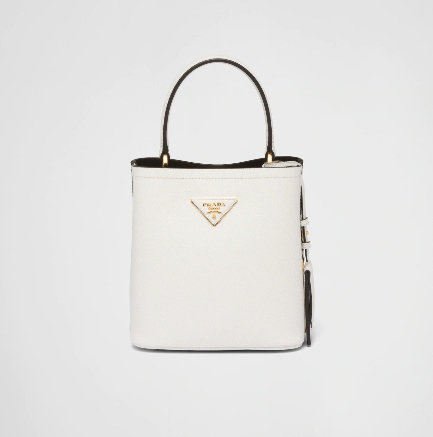 PRADAパニエ サフィアーノレザー スモールバッグ海外限定色有り!ローズ、サニーイエロー、マンゴー、エメラルド、スレートアイコニックな素材の「サフィアーノ」レザー(牛革)を使用したコンパクトなプラダ パニエ バッグ。ストラップ開閉式のトップが特徴のシングルハンドルのエレガントなデザイン。レザーハンドル取り外し・調節可能なレザーのショルダーストラップ(長さ:105cm)取り外し可能なレザーのネームタグ